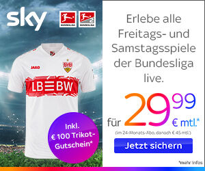 Mit DAZN bist du in der Saison 25/26 ganz nah dran am VfB! Erlebe die Bundesliga Konferenz am Samstag und alle Sonntagsspiele des VfB Stuttgart live. So verpasst du keinen entscheidenden Moment und kannst jeden Treffer, jede Parade und jeden Jubel hautnah mitverfolgen. Unterstütze den VfB von zu Hause oder unterwegs und genieße Fußball in bester Qualität!