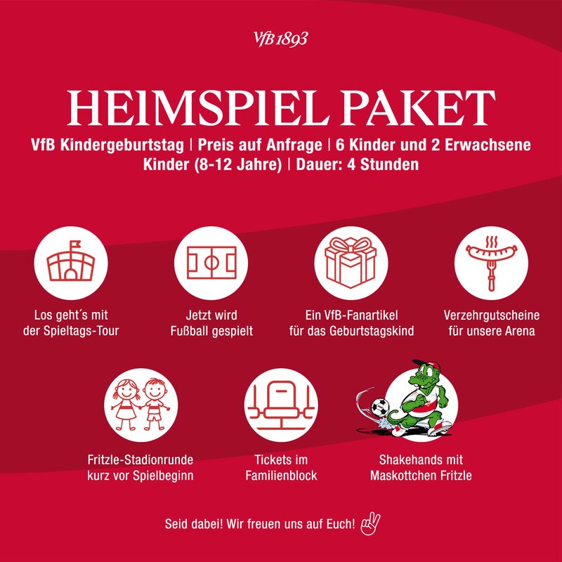 Um einen Kindergeburtstag beim VfB zu feiern, melde dich bitte mit deinem Account an und fülle das Formular aus.Children’s Birthday at VfB